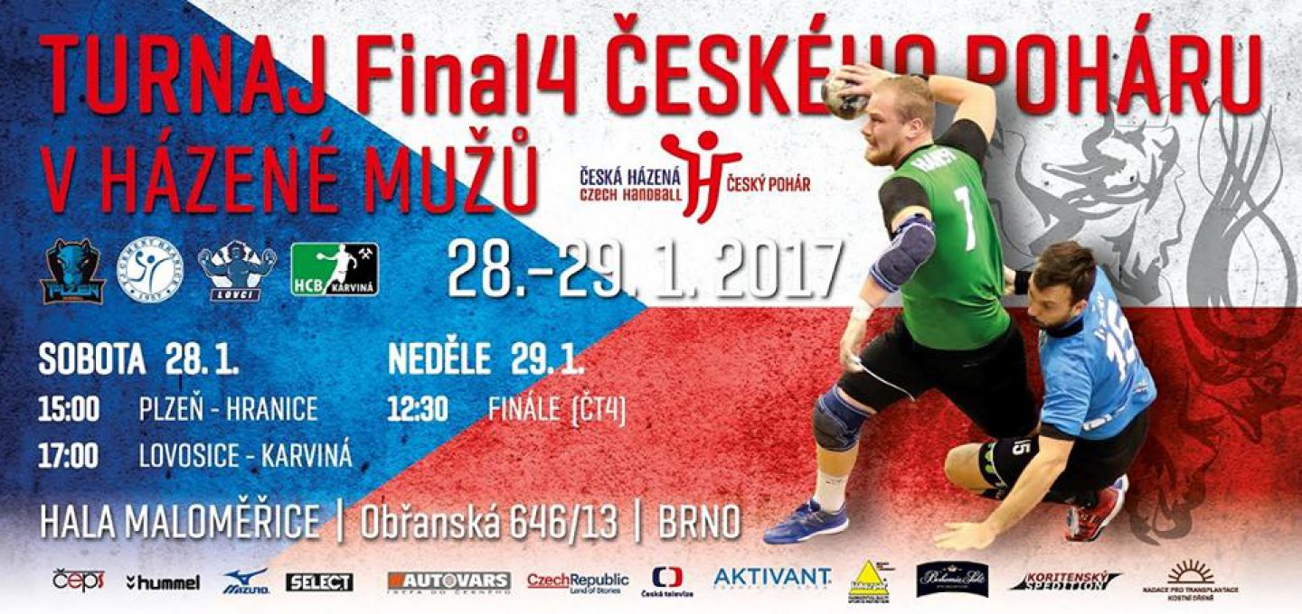 Český pohár házenkářů vyvrcholí o víkendu v brněnských Maloměřicích. Semifinále budou přenášena na portále TVCOM, finále odvysílá živě kanál ČT Sport v neděli 29. ledna 2017 od 12.30 hod. Zisk trofeje obhajuje HCB Karviná.