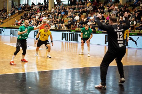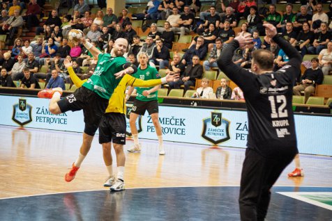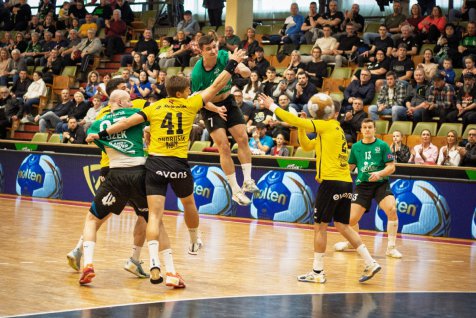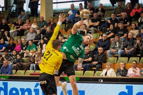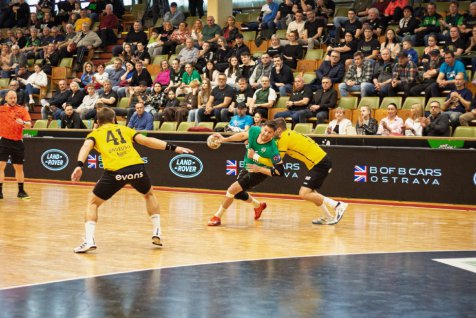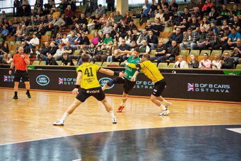 V prvním sobotním utkání Karviná od úvodu udávala tempo a poměrně rychle si vybudovala náskok. Už v prvním poločase vedla o pět branek a po změně stran svůj náskok navyšovala. Frýdek-Místek sice bojoval, snažil se kontrovat rychlými akcemi i střelbou z druhé vlny, ale domácí obrana v čele s brankářem Mokrošem pracovala spolehlivě. Karviná těžila i z brejků a přesné střelby spojek, díky čemuž nakonec zvítězila poměrně výrazně 37:27. Na domácí straně se do střelecké listiny zapsalo hned několik hráčů, mimo jiné Jonáš Patzel, Blyzniuk a Solák, všichni po třech gólech. Nejlepším střelcem Frýdku-Místku byl Ondrušík, který rovněž zaznamenal tři branky.