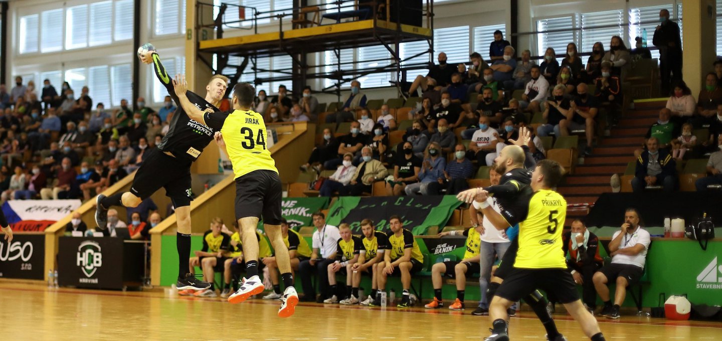 Do utkání vstoupily oba týmy od začátku ve velkém tempu. Hra měla rychlý spád. V desáté minutě jsme se ujali slibného náskoku 7:3, ale poté co si trenér Tonar vzal time out, se ještě hosté dokázali vrátit do zápasu. V 15. minutě bylo srovnáno 7:7. To jsme si pro změnu vzali oddechový čas my a utkání se poté začalo lépe vyvíjet pro naše borce. Brzo jsme znovu navýšili vedení, střelecky se dařilo na spojkách Solákovi s Patzelem a hosté už nedokázali kontrovat. Do přestávky byl náš pětibrankový a měli jsme nakročeno k zisku bodů.