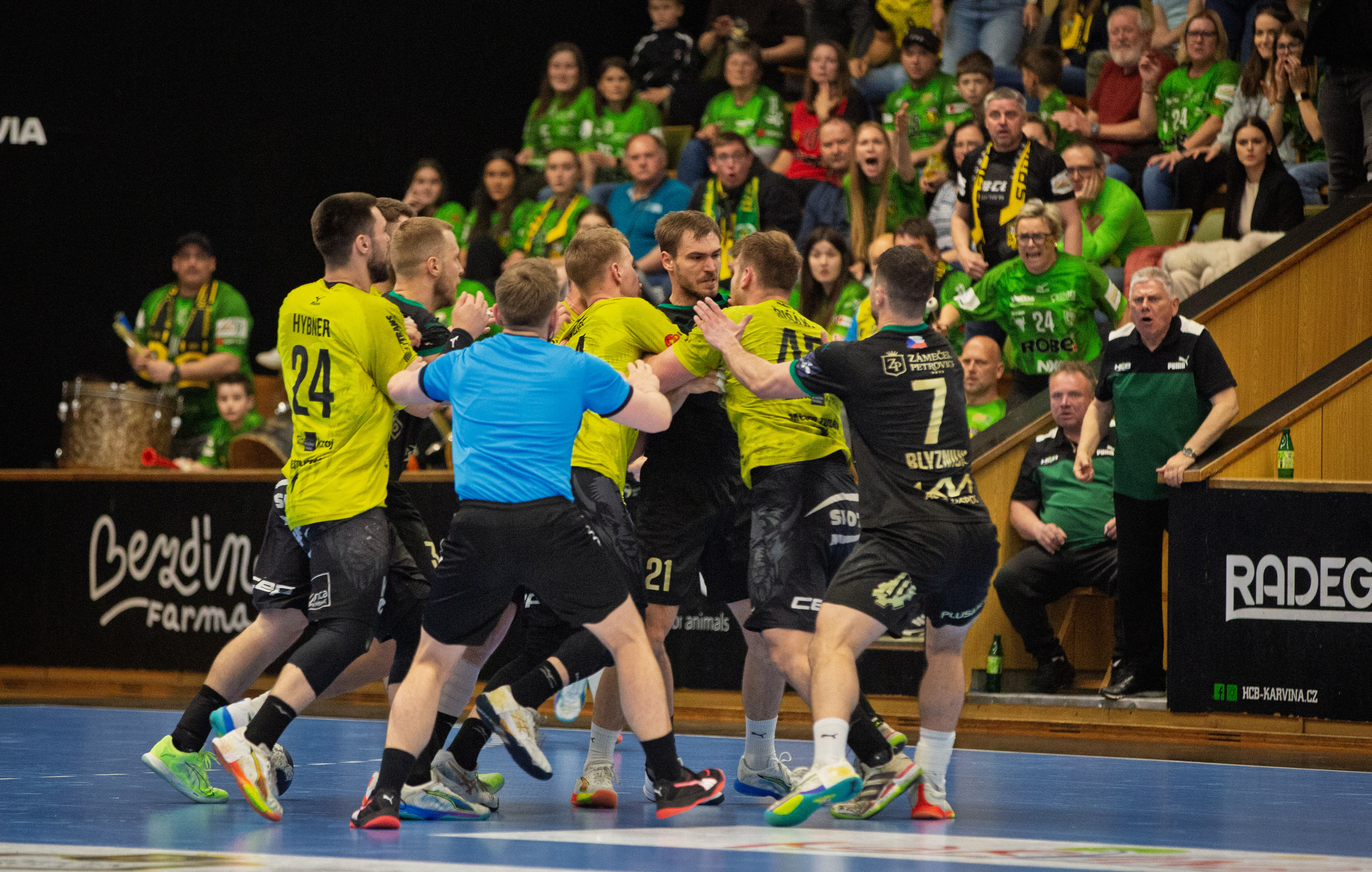 Hned úvodní semifinálový duel mezi Karvinou a Zubřím potvrdil očekávání, fanoušci viděli mimořádně emotivní, vyrovnaný a místy až vypjatý souboj, který rozhodly až závěrečné minuty. Domácí celek nakonec dokázal utkání zvládnout a po vítězství 36:33 se ujímá vedení v sérii 1:0.