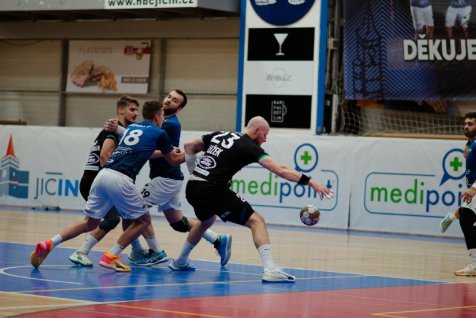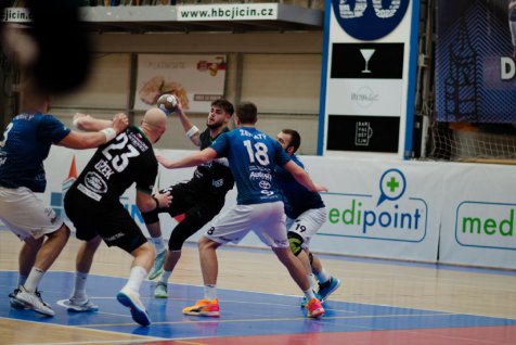 Jičín vstoupil do zápasu odhodlaně a v úvodních minutách držel s favoritem krok. Díky rychlé hře a důraznému přístupu domácí tým dlouho držel skóre vyrovnané. Karviná však postupně přebírala iniciativu, a od poloviny prvního poločasu začala diktovat tempo hry. Její náskok narostl na tři branky (15:18) již do přestávky.