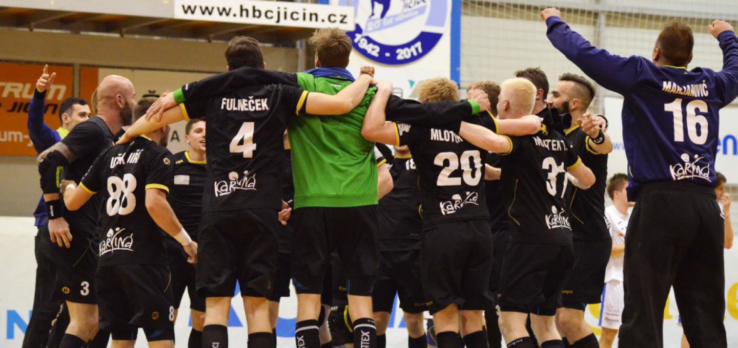 Druhý poločas jsme začali ve velkém stylu. V bouřlivé atmosféře, kdy to mnohdy na tribunách, ale i na palubovce mezi hráči, opravdu jiskřilo, jsme si budovali další náskok. V 36. minutě byl stav 13:20 a to byl rozhodující trhák. Marek Monczka proměňoval s jistotou sedmimetrové hody ale v tom se mu nejméně vyrovnal Ondra Šulc na straně Jičína. Na levém křídle se chytil Honza Zbránek, který v druhém poločase čtyři branky. Nicméně to na zlepšenou hru domácích nestačilo. Ti se pomalu ale jistě přibližovali a třetí utkání série gradovalo v dramatické koncovce. My se střelecky začali trápit a dlouhých 10 minut jsme nedali branku. Náš střelecký výpadek vyvrcholil neproměněnou sedmičkou Monczky v 55. minutě. Domácí vzápětí dokonce srovnali a o osudu utkání a tudíž i čtvrtfinálové série, nebylo zdaleka rozhodnuto. Až v 58. minutě se, trochu šťastně, trefil Marek Monczka a tím odčinil svoje zaváhání při sedmičce. Toto těsné vedení jsme se snažili udržet a nedovolit domácím skórovat. Ale přesto nakonec utkání vyvrcholilo zápletkou, jakou by ani zkušený scénárista nevymyslel. Třináct vteřin před koncem byl totiž za faul Slávka Mlotka na brankovišti nařízen sedmimetrový hod. K němu se postavil Ondra Šulc, kterého si ještě dobře pamatujeme z dob jeho působení v našem dresu v létech 2008 - 2009. Proti němu byl v naší brance Nemo a ten byl v tomto rozhodujícím okamžiku úspěšnější. Střelu vykopl levou nohou a my mohli slavit postup do semifinále!