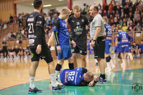 Do utkání vstoupili lépe domácí, kteří se ujali vedení 5:3. Dvougólový náskok držel Frýdek-Místek do 11. minuty, kdy vedl 7:5. Pak se ale naši hráči prosadili třikrát po sobě a otočila duel ve svůj prospěch. Větší náskok jsme si ale nevytvořili. Pokračovala přetahovaná o každou branku. Až dvě minuty před koncem prvního poločasu jsme odskočili na rozdíl dvou branek po trefě Jonáše Patzla. Poslední dvě minuty však patřily domácím, nastříleli tři branky v řadě a první poločas tak nakonec vyhrál domácí tým 15:14.
