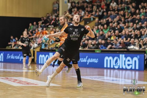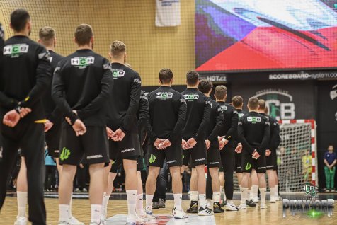 Hosté sice utekli na tříbrankový rozdíl ale jen nakrátko. Stav jsme srovnali, dařila se zejména spolupráce spojek s Honzou Užekem na pivotu. Těsně před koncem poločasu ještě viděl přímou červenou kartu Režnický za úder loktem do obličeje pronikajícího Patzla.