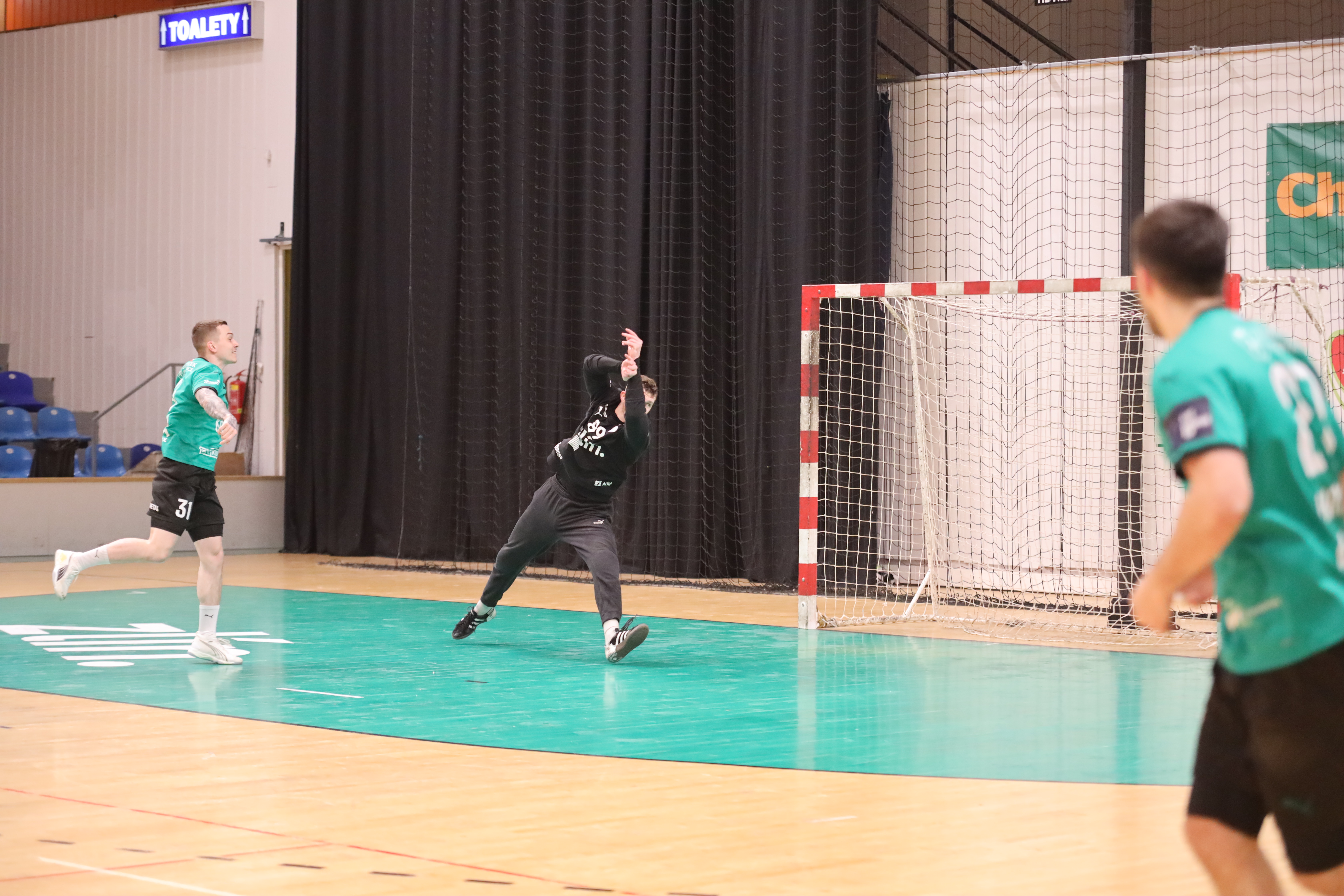 Karviná ale postupně zpřesnila obranu a začala se prosazovat v rychlém přechodu do útoku. Důležité góly přidali Pavel Bajer, Daniel Křístek či Adam Bujok, a hosté si tak vypracovali několikabrankový náskok. Ten si svěřenci Karviné dokázali pohlídat až do konce prvního poločasu, který skončil 22:18 ve prospěch Slezanů.